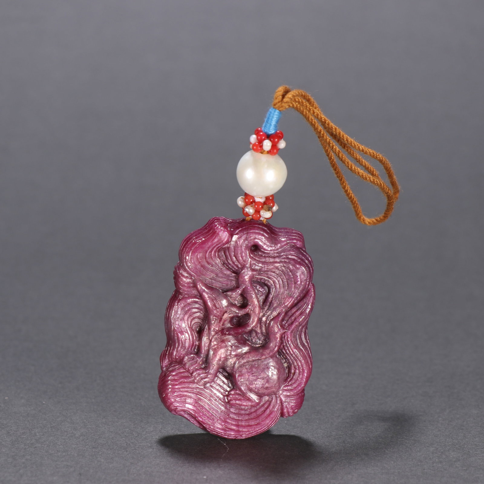Qing Dynasty Ruby Carved Auspicious Beast Pendant