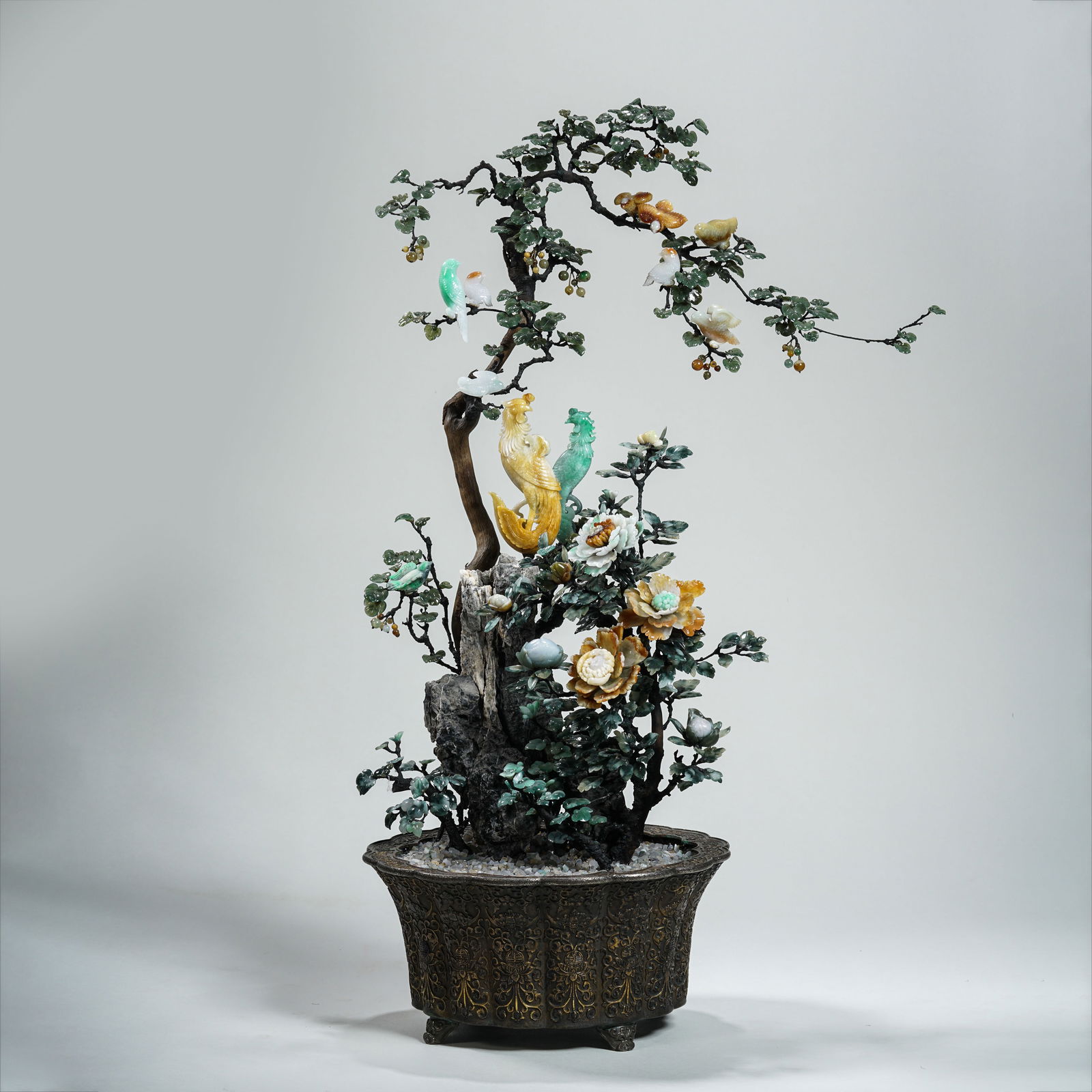 Qing dynasty silver basin jade bonsai