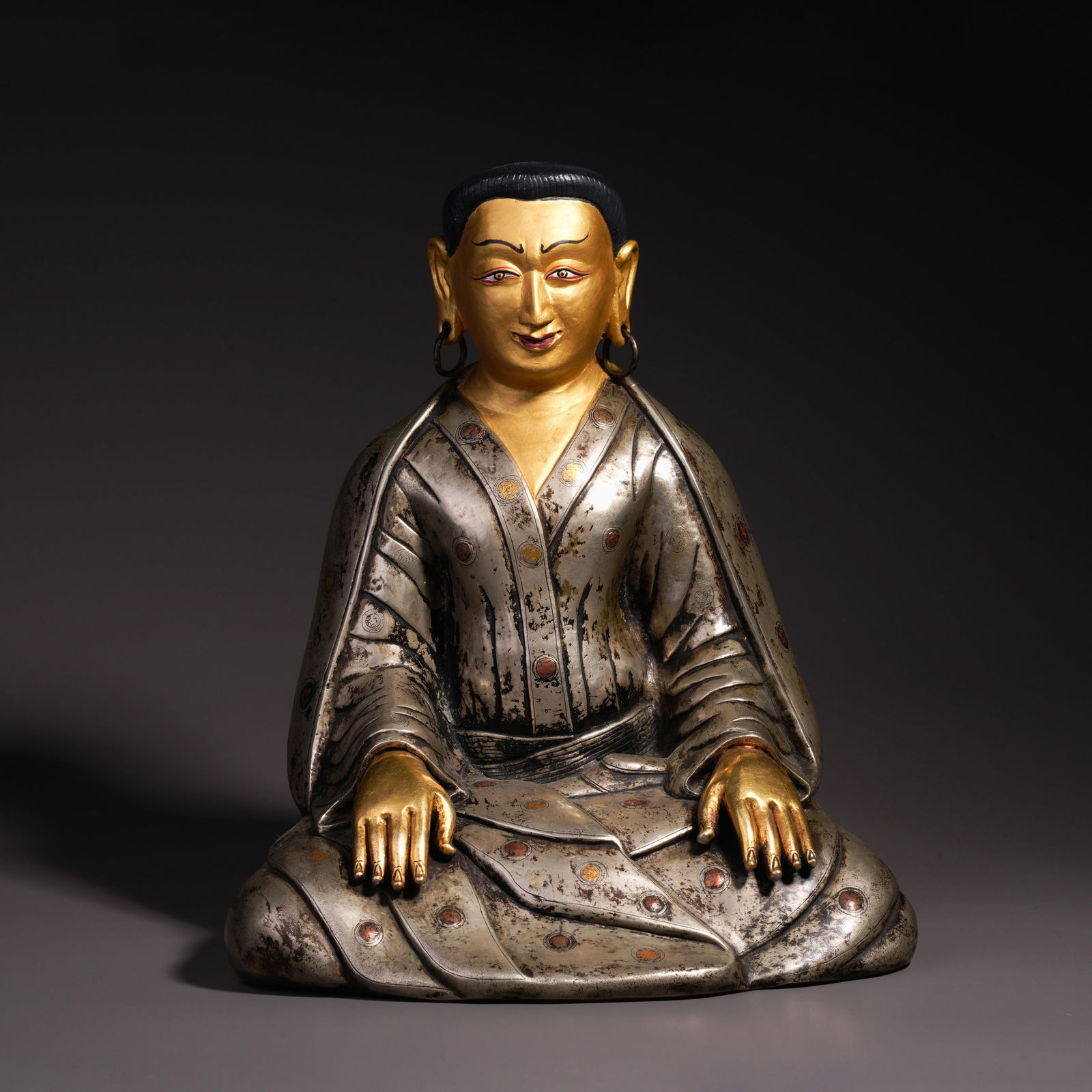 Qing Dynasty silver gilt master sitting statue