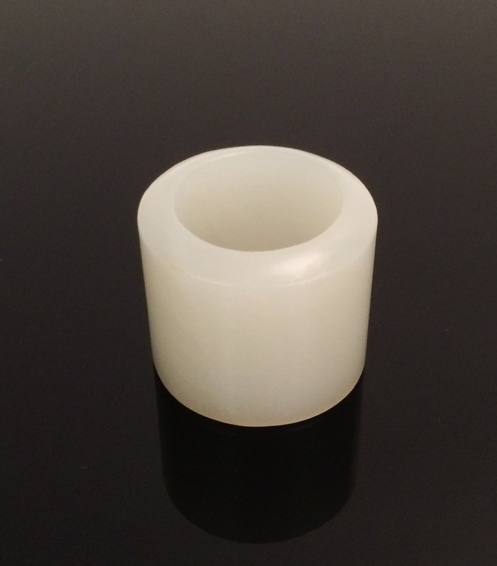 SoldCHINESE QING DYNASTY HETIAN JADE THUMB RINGCHINESE QING DYNASTY HETIAN JADE THUMB RING H. 3 cm. Diam. 3.5 cm. Weight 48 gram.See Sold Price
