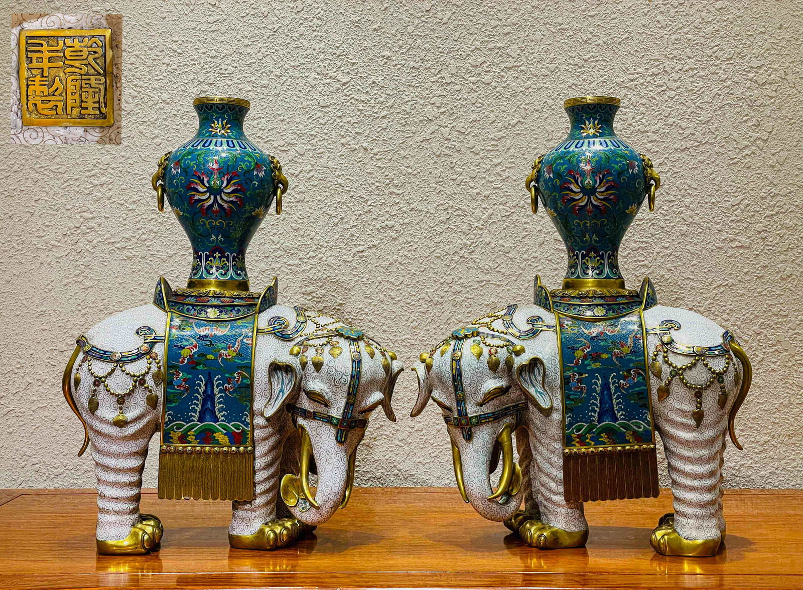 Lot of 2 Vintage Chinese Famille Rose Porcelain Elephant Candle Holder w/Matching Wood StandMar 01, 2026A Exquisite A pair of Cloisonne Lotus Pattern Dragon Pattern Elephant OrnamentMar 04, 2026A Pair of Elephant Incense Burners with High Relief Engraving, Cloisonné, and EnamelFeb 27, 2026A pair of pure copper cloisonne elephant figurines6 hrs LeftQing dynasty gilt copper and enamel401 Lots AwayA Pair of Huge Cloisonne Lotus,Auspicious Cloud and Bats Pattern Beast-Ears Vases,With Elephant BaseMar 11, 2026Pair of Colorful Pottery Elephant StandsFeb 28, 2026A pair of lapis lazuli cloisonné Taiping elephant ornaments from the Qing DynastyFeb 27, 2026A Pair of Exquisite Famille-Rose Gilt Elephant OrnamentFeb 26, 2026PAIR BRONZE-GILT ELEPHANT DECORATIONSMar 01, 2026A Exquisite A pair of Cloisonne Elephant OrnamentFeb 27, 2026A pair of gold and silver inlaid gemstone bronze jars in vasesFeb 28, 2026Qing Yongzheng Style Enamel with Gold Outline and Floral Design Elephant Ear VaseFeb 24, 2026A Pair of Antique Chinese Bronze Elephant StatuesFeb 24, 2026A pair of Qing Dynasty Qianlong model copper tire cloisonné enamel appreciation bottlesMar 07, 2026A Pair of Exquisite Stone Inlaid Gems Elephant OrnamentFeb 27, 2026