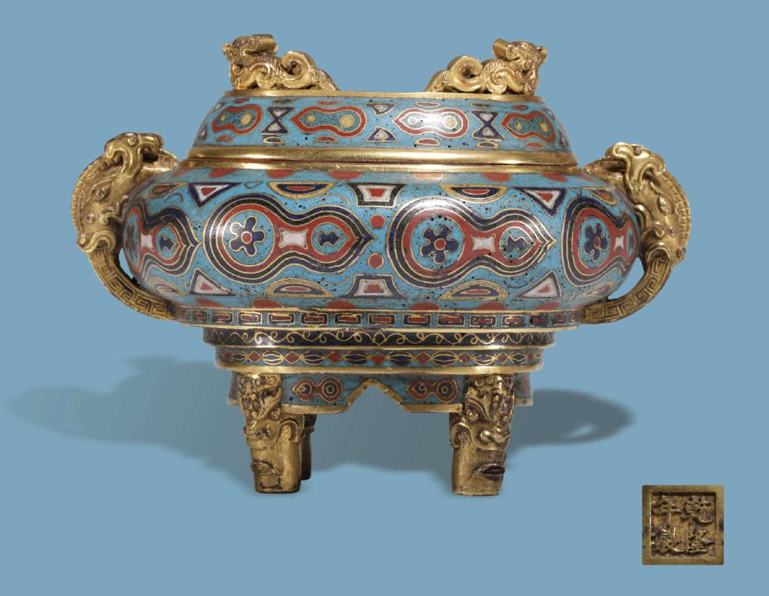 A Qing Dynasty copper gilt cloisonné enamel aroma burner