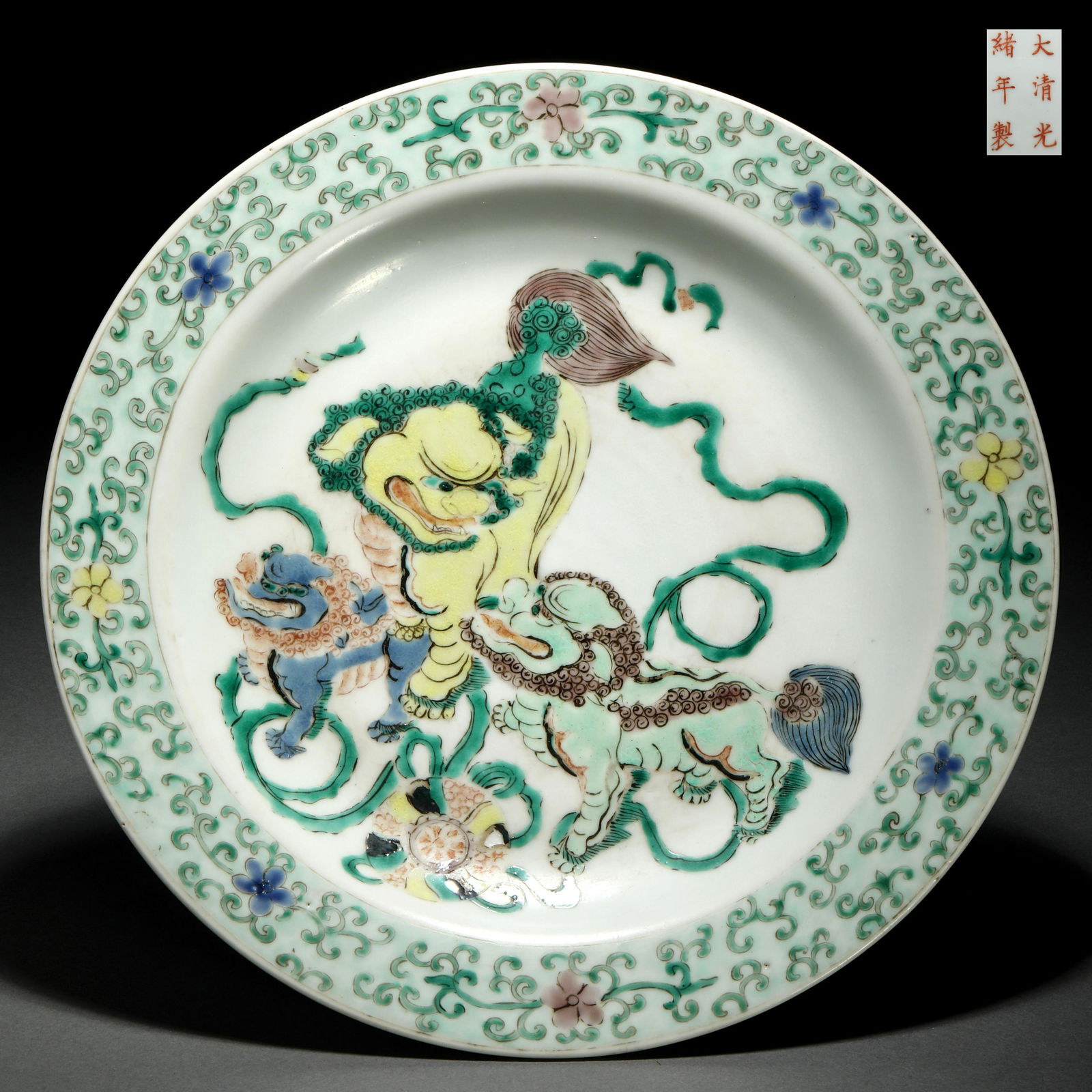 QINGSU THREE-COLOR AUSPICIOUS ANIMAL PATTERN PLATE
