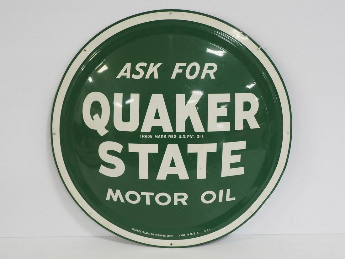 Quaker State Motor Oil Metal Sign (TAC)3 days Left'50 72" Quaker State Embossed SST Advertising SignMar 21, 2026QUAKER STATE MOTOR OIL TIN BUBBLE SIGNFeb 18, 2026Quaker City Motor Oil Metal Sign (TAC)3 days LeftGroup of 3 Quaker-State One Quart and One Gallon Metal Oil CansFeb 15, 2026VALVOLINE SIGNFeb 21, 20261984 Oilzum SST Advertising SignMar 21, 2026CASTROL PORC. SIGNFeb 21, 2026Group of 3 Quaker-State Oil Can Shaped Avon Hand Cleanser CansFeb 15, 2026Esso Motor Oil SignFeb 21, 2026PENNZOIL DOUBLE SIDED ADVERTISING SIGN4 days LeftGroup Of 20 Quaker State & Tri-sure Oil Related Advertising Bottle CapsFeb 15, 202642" Illinois Farm Supply Co DSP Advertising SignMar 21, 2026