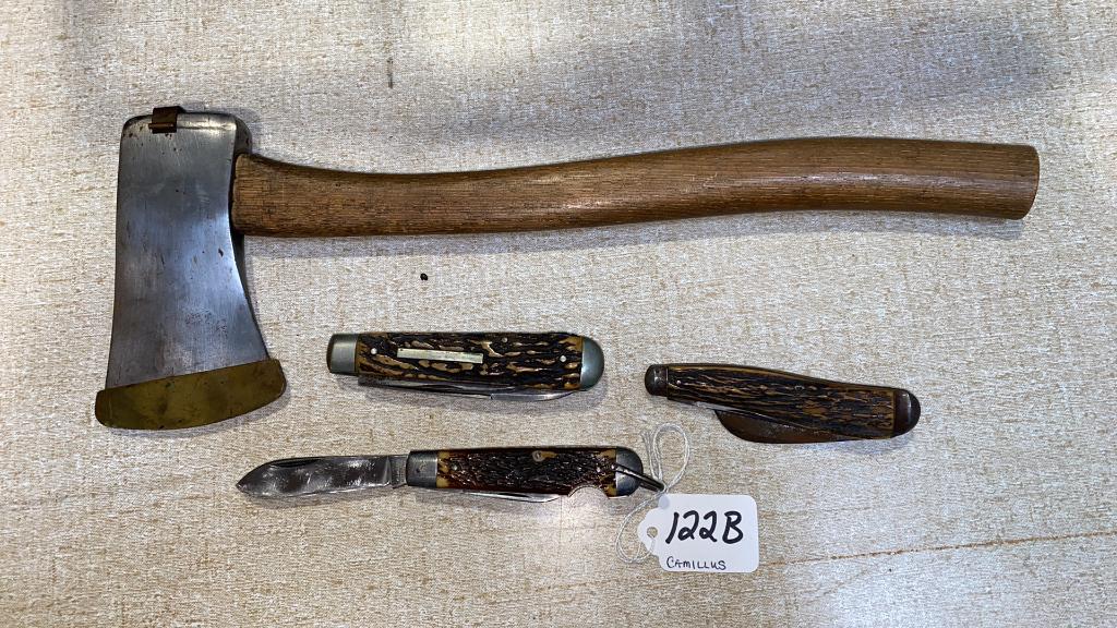 QUALITY AXE & 3 POCKET KNIVES