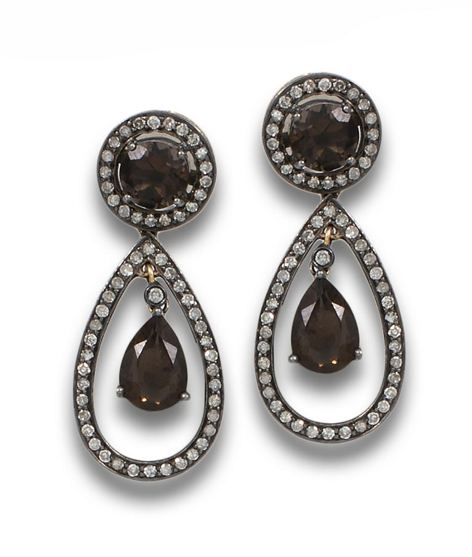 QUARTZ, DIAMONDS AND SILVER EARRINGS
