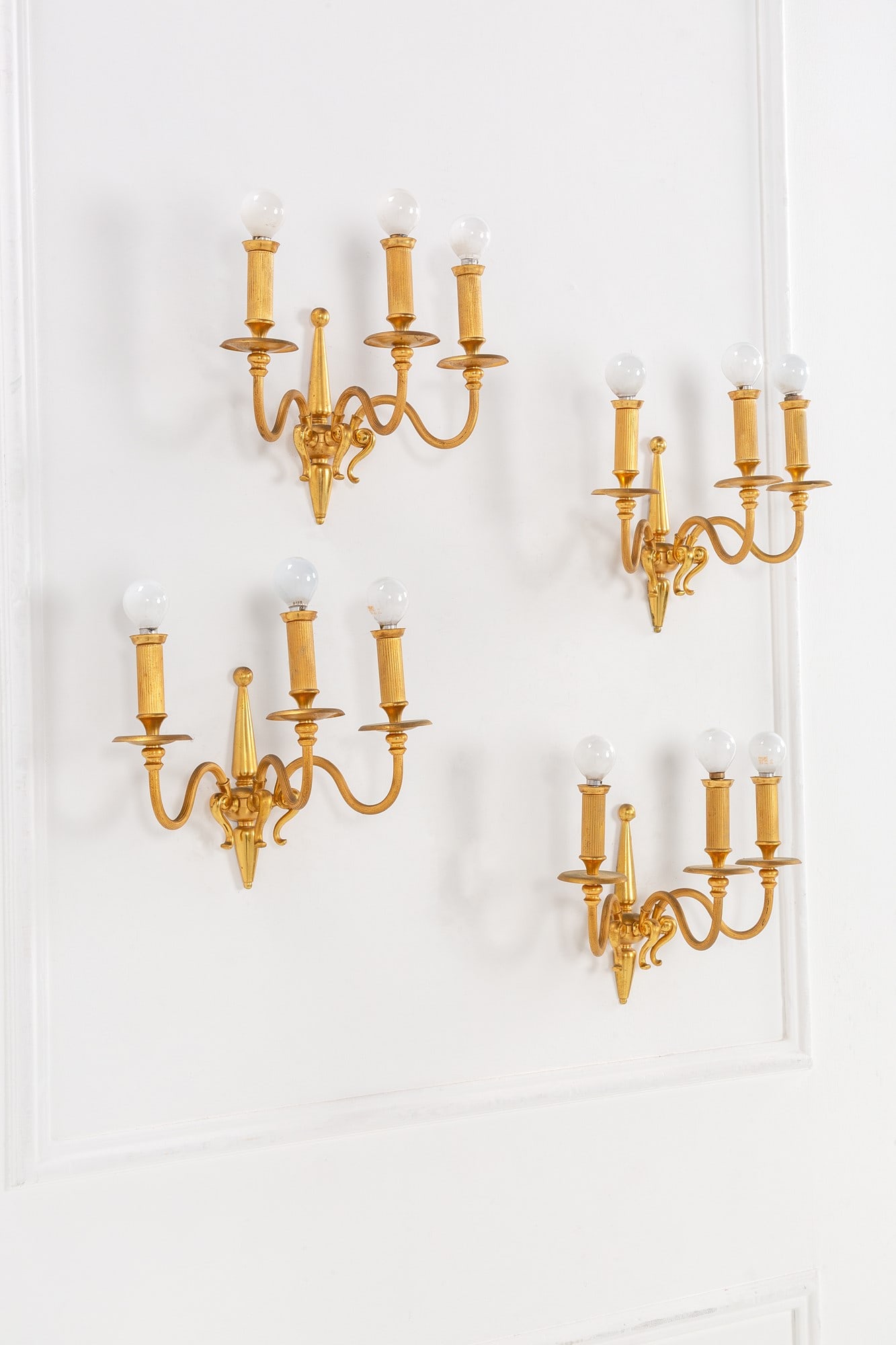 Quattro lampade da parete a tre bracci