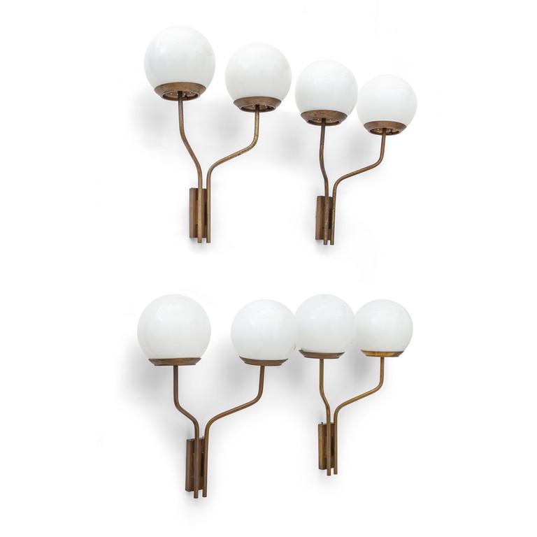 QUATTRO LAMPADE DA PARETE, anni '50. Ottone,
