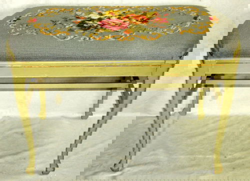 QUEEN ANN STYLE GREEN GLAZE NEEDLE POINT BENCH
