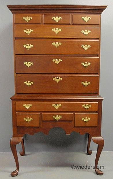 Queen Anne cherry highboy, c.1780, having a molded
