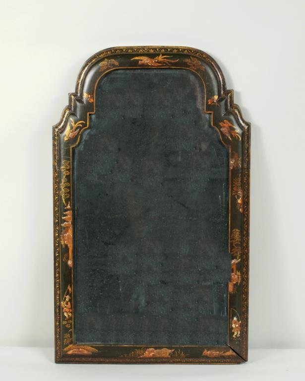 Tall Queen Anne Verre Eglomise and Giltwood Mirror