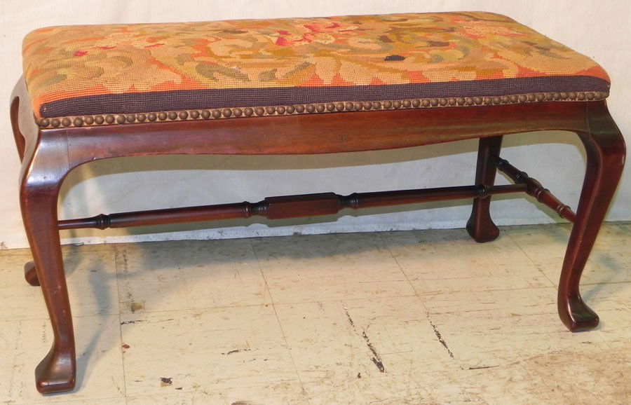 Queen Anne mahog. needlepoint stool.
