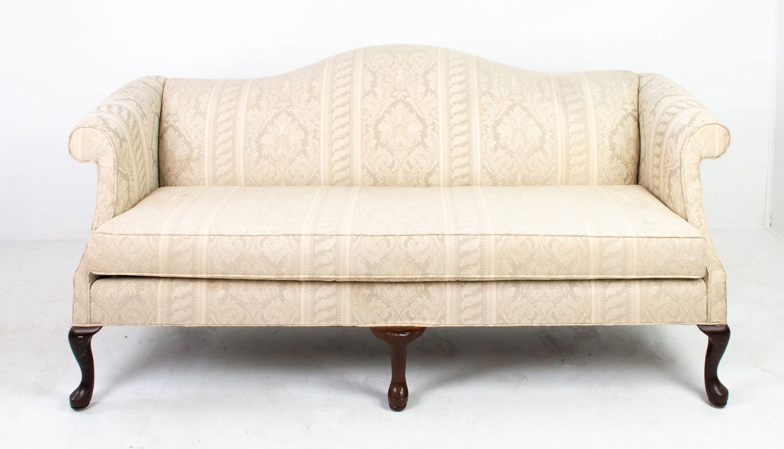 Queen Anne Style Mahogany Camelback Sofa