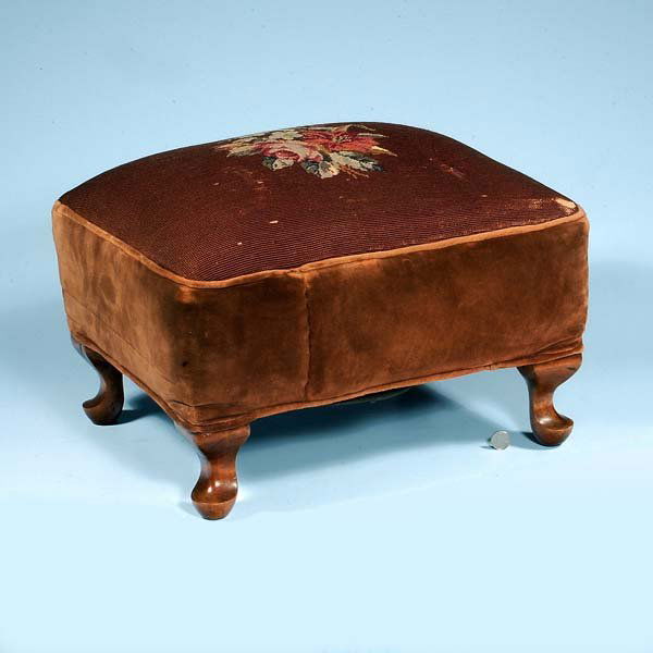 Queen Anne style maple foot stool with needlepoint
