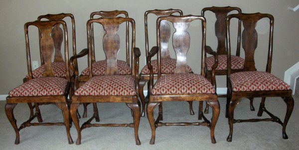 QUEEN ANNE STYLE WALNUT DINING CHAIRS, EIGHT