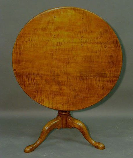 Queen Anne tiger maple tea table, 18th c., with a