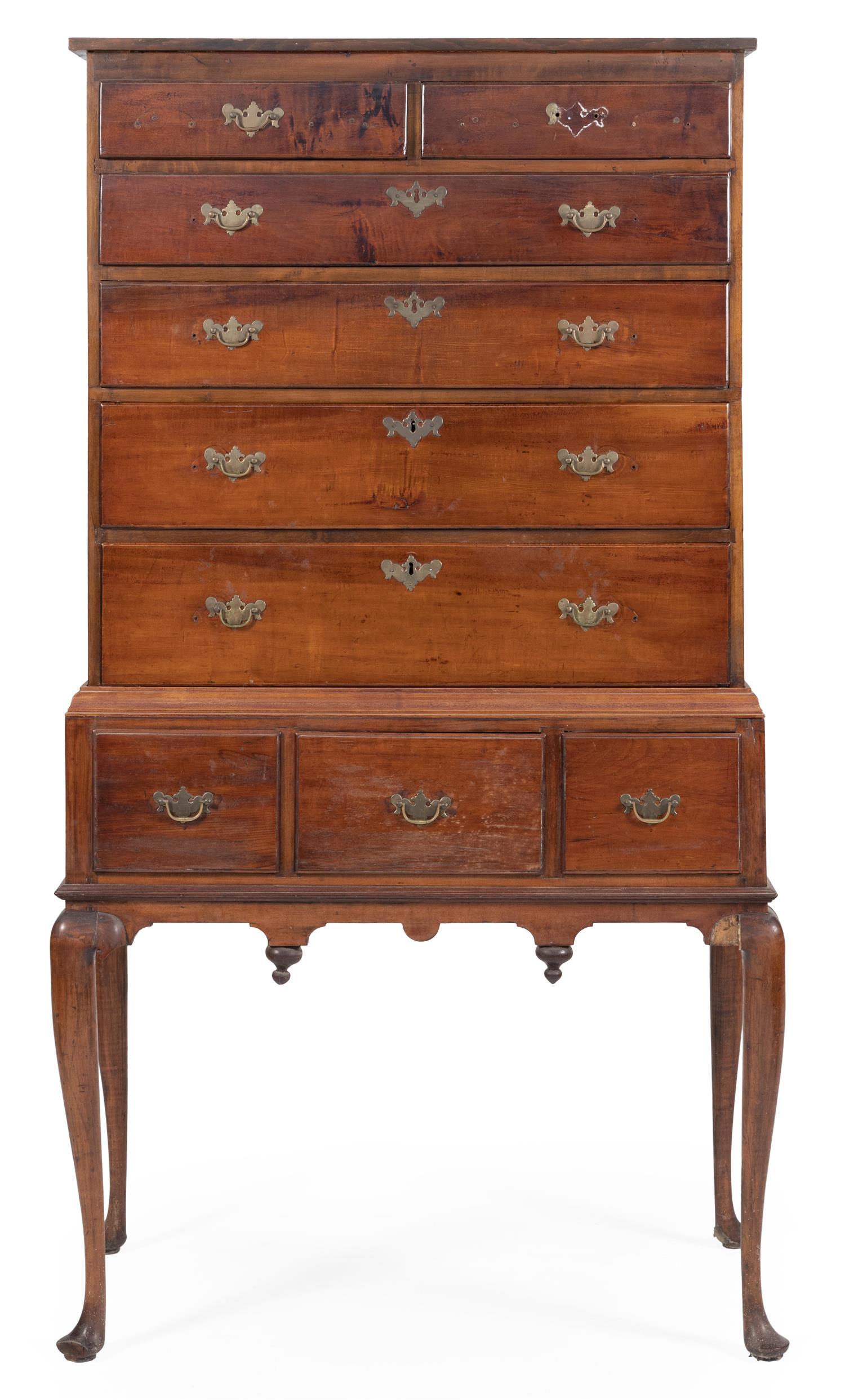 QUEEN ANNE TWO-PART HIGHBOY In cherry. Upper case
