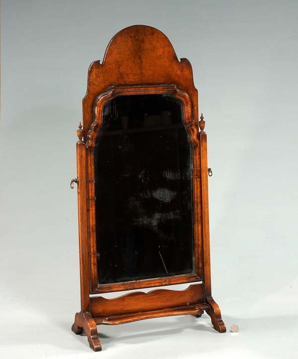 Queen Anne walnut bonnet top dressing mirror with