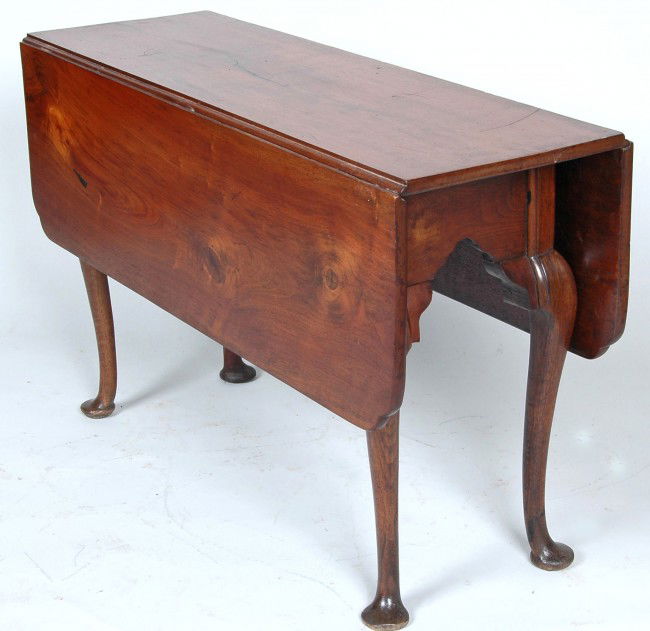 SoldA Queen Anne Walnut Drop-Leaf Dining Table, Philadelphia, PA, Circa 1760A Queen Anne Walnut Drop-Leaf Dining Table, Philadelphia, PA, Circa 1760 With shaped leaves, on cabriole legs ending in trifid feet. H: 28 1/2 in. W: 48 in. D: 19 3/4 in. (when unopened) This lot is lSee Sold Price