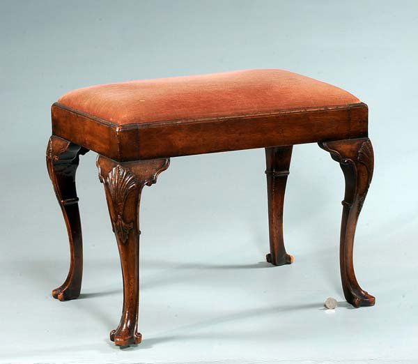 Queen Anne Walnut Stool On Cabriole Legs With Shell