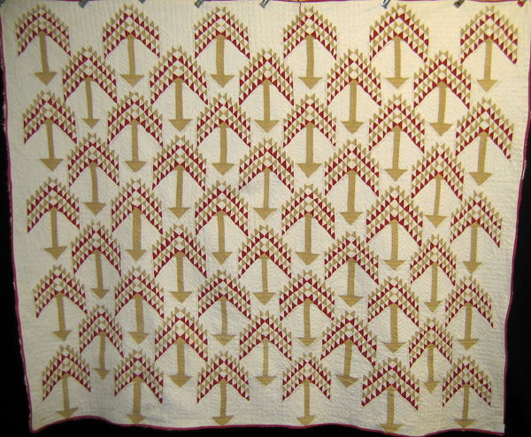 Quilt. Pine tree. Vegetable Dye. Red and tan. 1880
