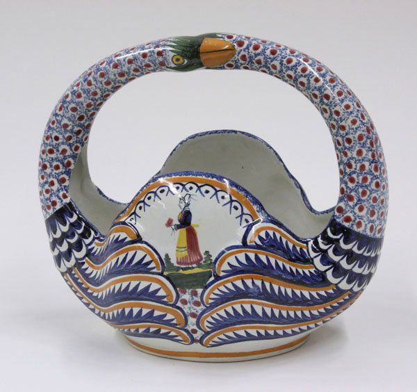 Quimper faience swan neck basket