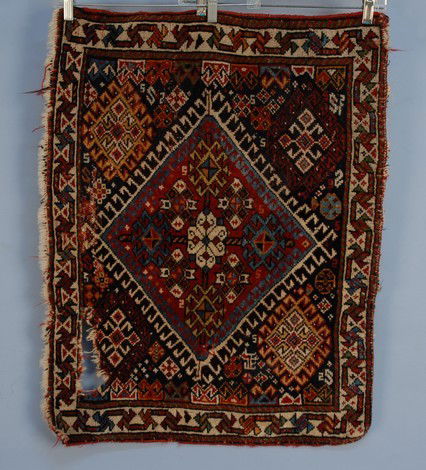 QUSHGI BAG FACE, 19th C. Large central hooked diam