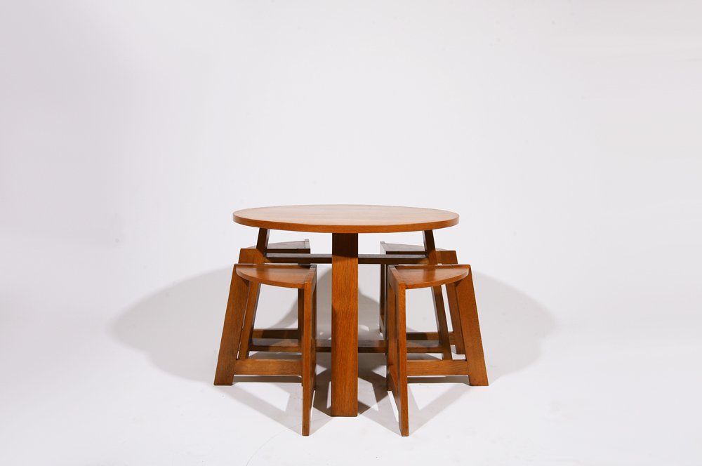 R. Guerard, Low table with four stools, c. 1950