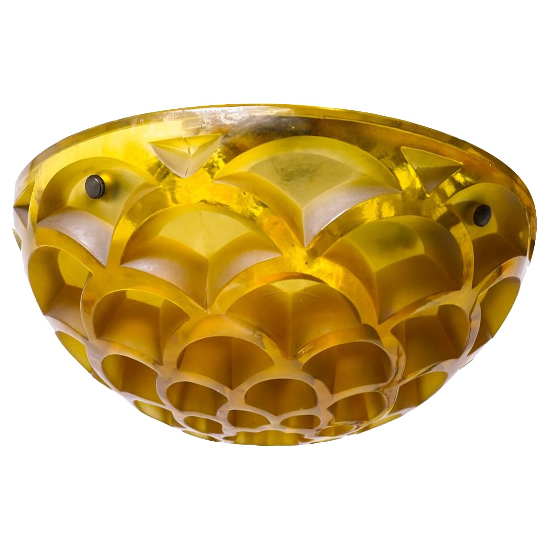 R Lalique 'Rinceaux' Amber Glass Chandelier Plafonnier