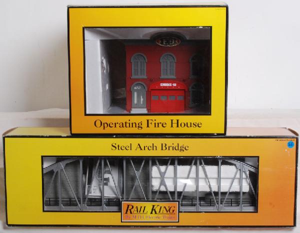 Railking operating firehouse and arch bridge