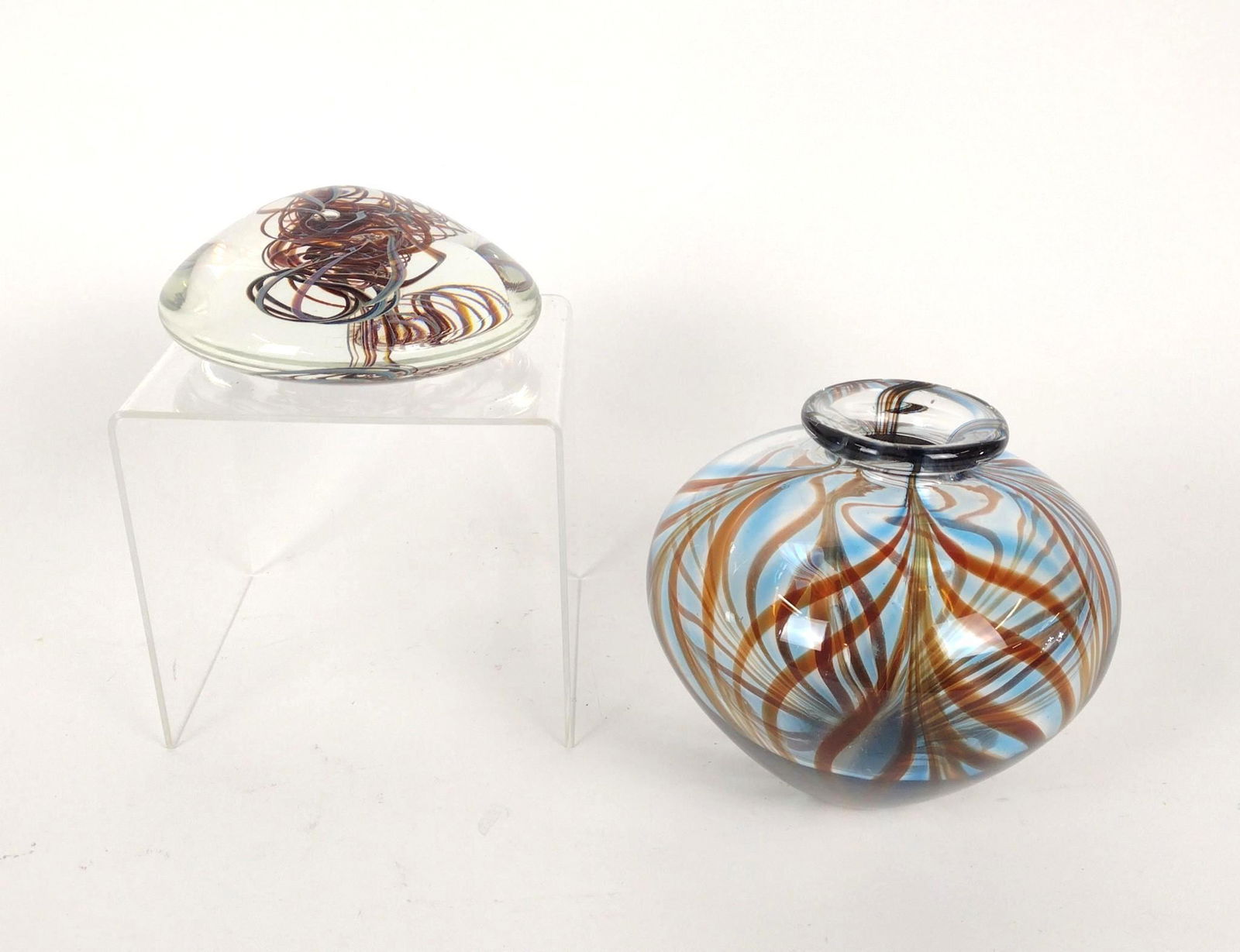 Vintage Art Glass Paperweights Set of 2