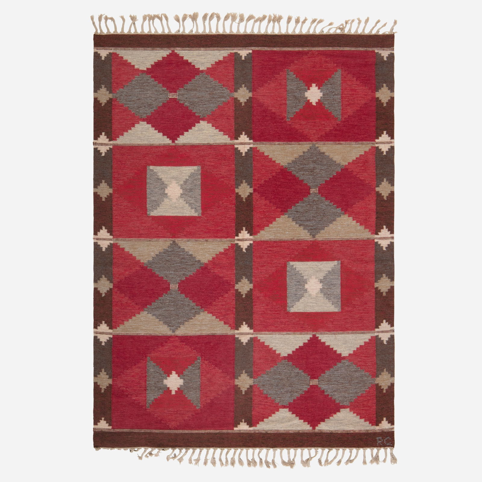 SoldRAKEL CARLANDER VINTAGE SWEDISH FLATWOVEN CARPETFrom Nazmiyal Collection. VINTAGE SWEDISH FLATWOVEN CARPET, DESIGNED BY RAKEL CARLANDER. Circa date: Mid 20th Century. 11 ft 9 in x 6 ft 4 in (3.58 m x 1.93 m). This antique and vintage rug auction coSee Sold Price