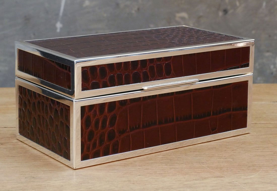 Birds Eye Maple & Inlaid Wood Storage Boxes 3p LOT5 days LeftJAUME TRESSERRA (BARCELONA, 1943) ‘Maletero’ chest of drawers.Feb 12, 2026Maitland Smith Gator Pattern Leather Trunk with Brass Hardware26 mins LeftMaitland-Smith Embossed Leather Wrapped Box w/Paw & Shaking Hands HandleFeb 08, 2026A SILVER-MOUNTED KARELIAN BIRCH WOOD CIGAR BOX BY FABERGÉ, WORKMASTER ANDERS (ANTTI)Feb 13, 2026An unusual and good silver, gold piqué and tortoiseshell casket William Comyns, London 1911Early 21st Century Leather Boxes With Velvet Interior by Made Goods - A Set of 2Indian Brass Mounted Carved Wood ChestMar 26, 2026Gorham 1870 Rococo Revival Mixed Metal Humidor Copper Silver7 days LeftA SILVER SMOKER'S BOX AND COMPENDIUMFeb 17, 2026Vintage Faux Leather Trinket Chest5 days Left1980s Vintage Maitland Smith Tooled Leather Mahogany BoxChinese Lacquered Wooden Chest Coffee Table With Animated Palace SceneBaker Milling Road Campaign Trunk Coffee Table with Storage3 days LeftMAITLAND SMITH Empire style Tooled Embossed Leather Chest. Brown Leather Lift Top Trunk Has EmbossedFeb 11, 2026Patek Philippe Authentic Winder Watch Box Presentation Size 9x6x57 days Left