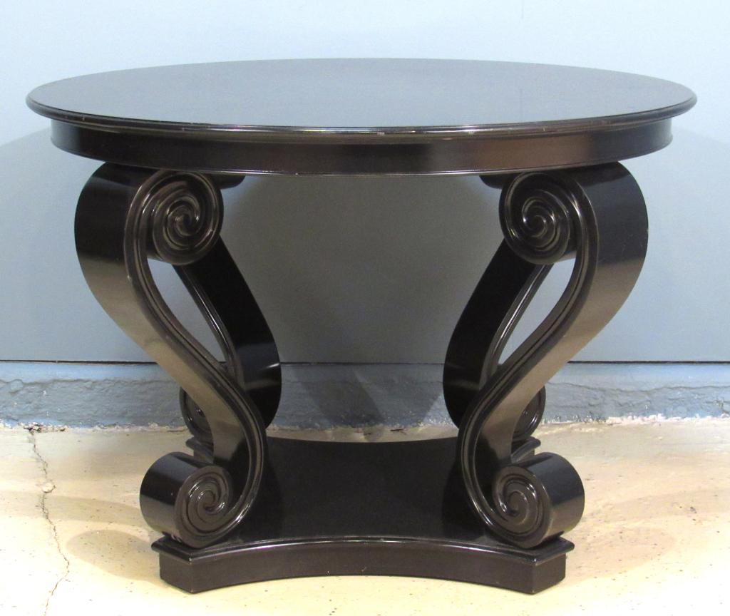 Maison Jansen Louis XVI Dining Table, Conference, Ebony, Bronze, French, 1930sMirror Topped Ebonized Side TableEbonized Marble Top Coffee Table / Cocktail Table On Wheels manner of JansenRalph Lauren Beekman Black Lacquered Cocktail Table6 days LeftNoir Claudio Dining Table Hand-Rubbed Black 99 x 54 Inches1 day LeftRomeo Sozzi Attributed Modern Dining TableMar 19, 2026Ralph Lauren Polo Wood Coffee TableMar 03, 2026Butler Bainbridge Black Licorice Side Table 28x28x281 day LeftModern Ebonized Wood Demilune TableMay 07, 2026Ralph Lauren Rococo Style Marble Top Center Table1 day LeftArt Deco Macassar Ebony Round Dining Table1 day LeftAmerican Empire Style Pedestal TableMar 06, 2026Italian Style Black Gold Floral Pedestal Table 30 Years Old8 hrs LeftGlenbrook Rustic Coffee Table Solid Wood Antiqued Black FinishFeb 28, 2026CUSTOM PAINTED OVAL COFFEE TABLE2 days LeftNoir Scheiben Empire Style Black Pedestal Table Mahogany VeneerMar 04, 2026