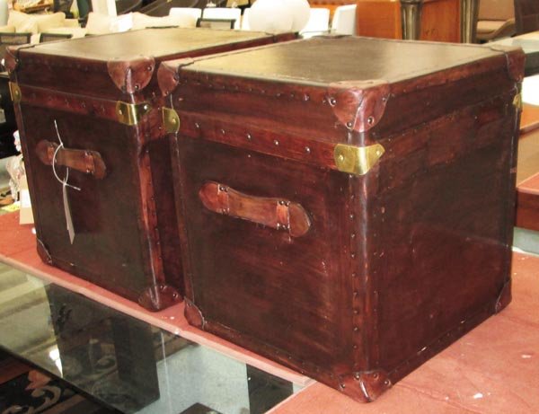 RALPH LAUREN STYLE STEAMER TRUNKS, a pair, leather,