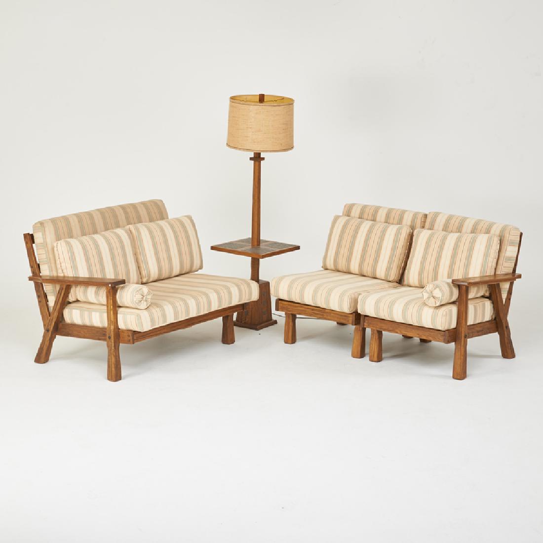 PAIR LARGE SCALE FRENCH OAK LOUNGE CHAIRS WITH SLAT BACK AND LOOSE CUSHION UPHOLSTERY C 1960.Kamelot Auctions4.4(345)$800Feb 24, 2026