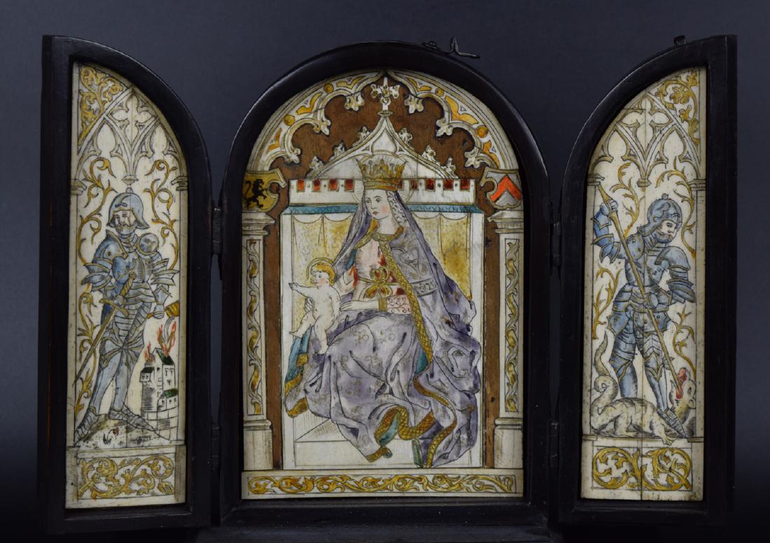Rare 17/18th Century hand painted on bone Triptych