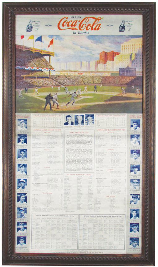 Rare 1939 Baseball Coca Cola Rare Statistic Poster