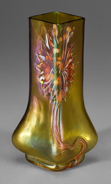 Loetz Style, Austria Iridescent Green Glass Vase
