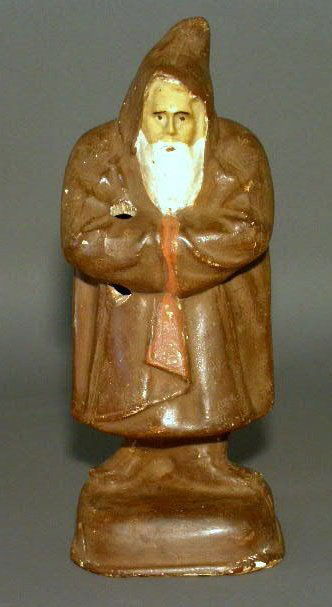Rare brown chalkware Belsnickle, 19thc. 15.5"h.