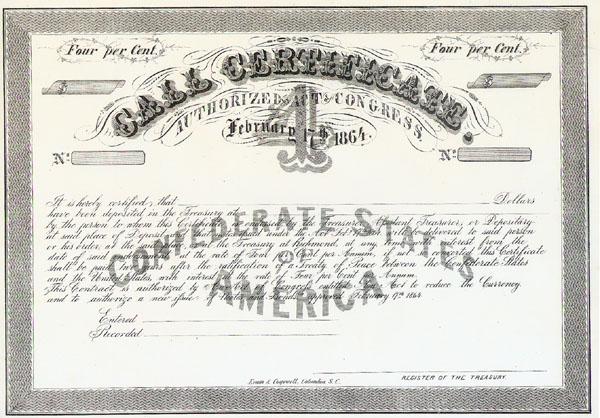 Rare Confederate 4% Call Certificate - Ball Type 1