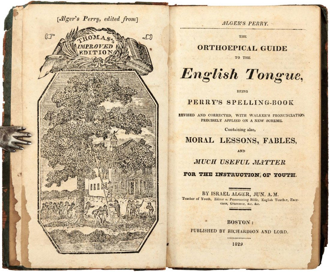 SoldRare early American Text BookHeading: Author: Alger, Israel Title: The Orthoepical Guide to the English Tongue, Being Perry's Spelling-Book Place Published: Boston Publisher:Richardson and Lord Date Published: 1829 <See Sold Price