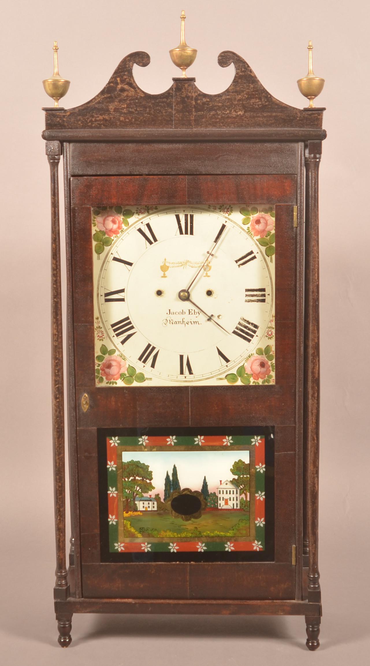 Rare Jacob Eby Sheraton Mahogany Shelf Clock.