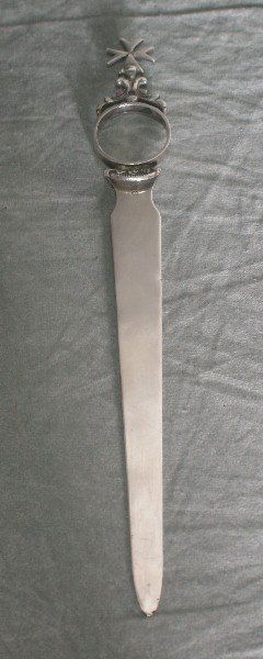 Rare Maltese silver library knife marked 917.
