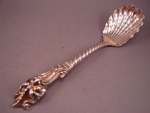 SoldThree Ornate Antique Pierced Sterling Silver ServersThree Ornate Antique Pierced Sterling Silver Serversto include: a rare Reed & Barton pierced serving spoon, pattern number 25A, with twist shoulder, vine and foliate motif handle, script monogram (9 1See Sold Price