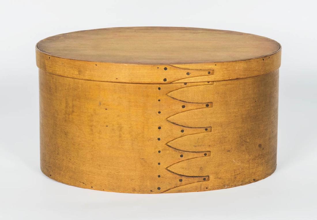 RARE OVAL BOX Pine and maple, original yellow stained