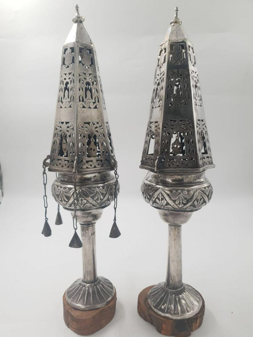 Rare pyramid shaped silver Torah finials