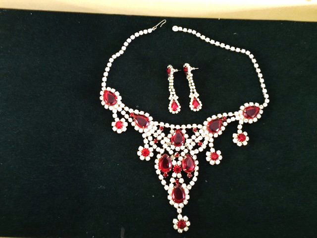 Rare -Red Rhinestone Necklace/Earrings