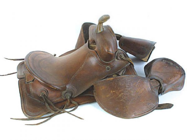 WW1 ERA MCCLELLAN SADDLE.4 days LeftEARLY 20TH CENTURY STYLE PONY SADDLE.4 days LeftAntique Tooled Leather Saddle from Rodoni Farms Santa Cruz,CA1 day LeftAntique Early 1900s Fred Mueller Denver, Colo. Colt 4 3/4" SAA Tooled "Buscadero" Double Holster RigMay 02, 2026Antique Early 1900s Miles City Saddlery 6" Barrel Medium Frame Revolver Holster & Money Belt RigMay 02, 2026Well-Made Western Roping Saddle with Deep Seat and Leather-Wrapped Horn3 days LeftA Collection of Vintage American Leather Holsters and Accessories including Smith and Wesson andMay 03, 2026Vintage Brown Leather SaddleApr 26, 2026Leather Collar Small Saddle Reins And BitApr 27, 2026Vintage Baseball Glove, Powderhorn and Toy Colt .45Apr 30, 2026Brown Leather Ornate Western Horse Riding Saddle3 days LeftVintage Western B Bar B Childs 13" Ridding SaddleApr 27, 2026
