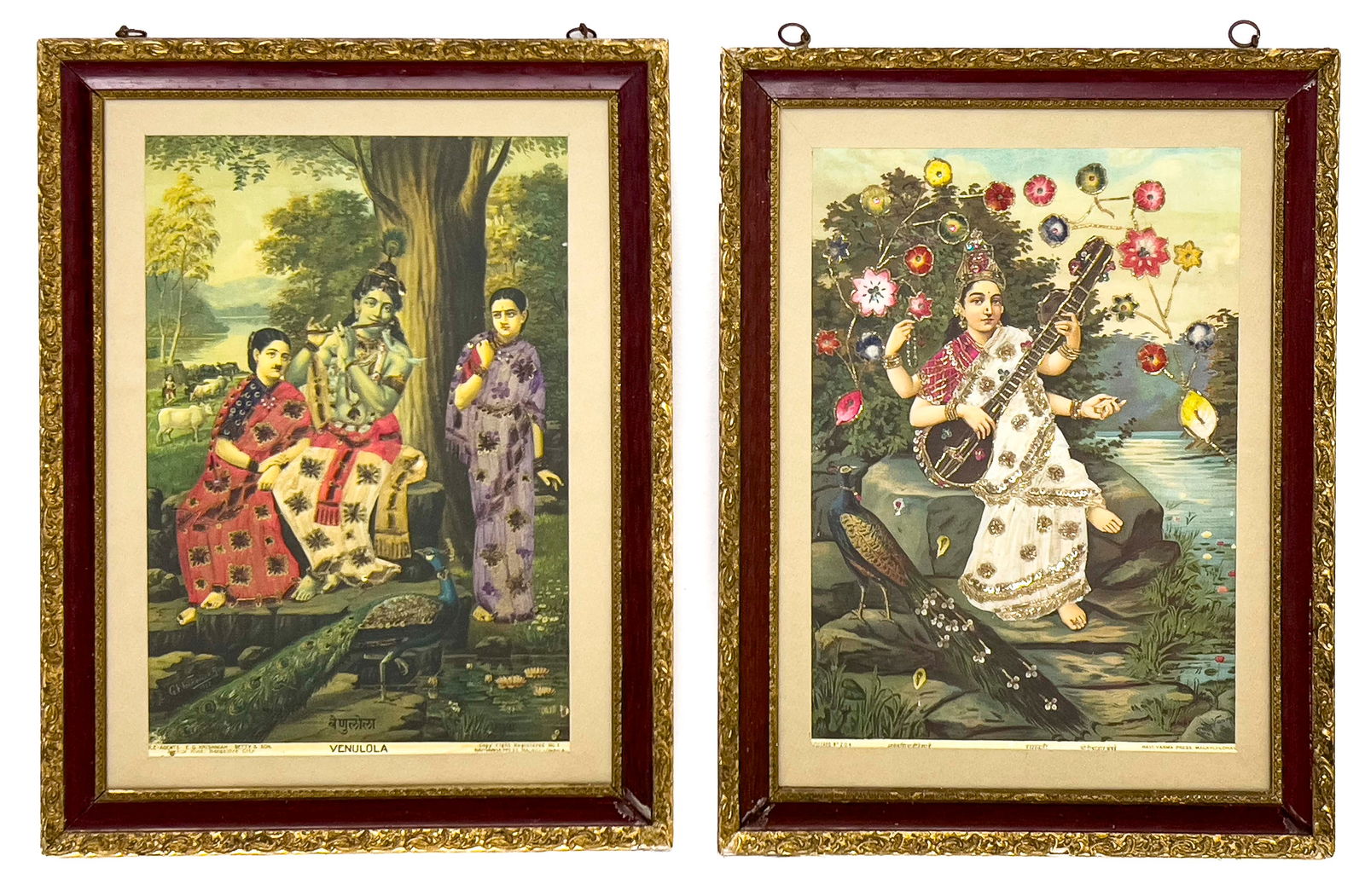 Ravi Varma Press - Embroidered Lithographs, Pair